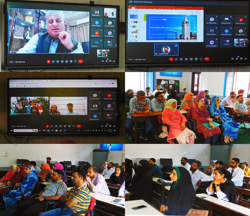 In his Special Lecture via virtual mode, Dr Sheikh Fayaz Ahmad, provided an exhaustive evaluation of Innovation Development and Intellectual Property Rights. He highlighted the role of innovation in the advancement of human civilization historically and its even more significance in an increasingly technology and market driven world today. He emphasized on the need to create a conducive atmosphere in the colleges and universities of Jammu and Kashmir to provide skill and innovation based knowledge to create a productive human resource pool which is integral to the future development and prosperity of our society on an equitable and inclusive basis. He urged all the stakeholders in academia to embrace Critical Thinking, Creativity, Collaboration and Communication which are crucial in developing the innovative mindset among the students. Dr Sheikh Fayaz Ahmad further called upon liquidating all the obstacles which are hampering the development of culture of innovation in our higher education system.