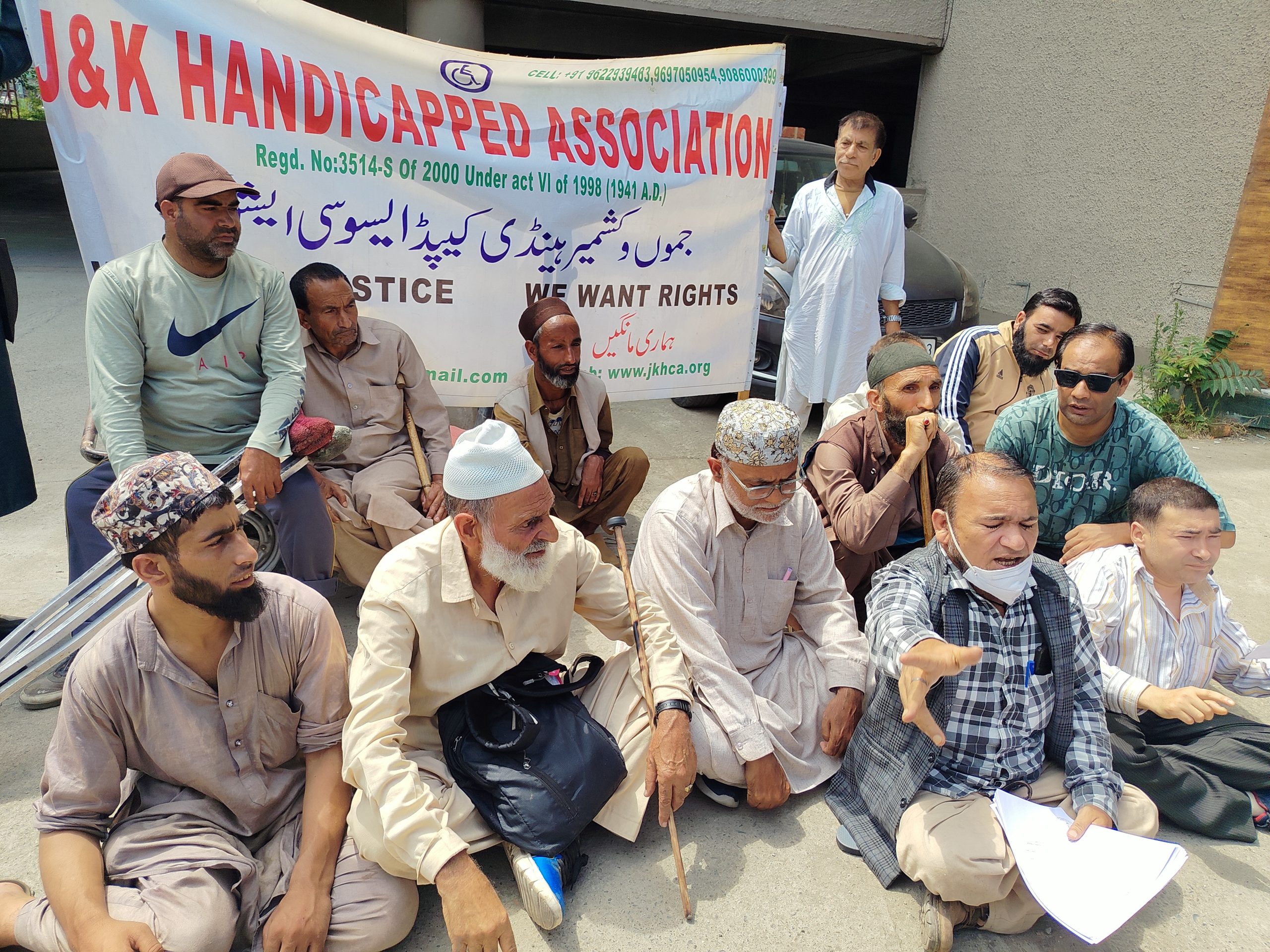 Srinagar, Aug 4 : Members of the Jammu and Kashmir Handicapped Association (JKHA) staged a protest at the Press Enclave in Srinagar on Monday, demanding the government take immediate steps to address the longstanding issues faced by the disabled community.